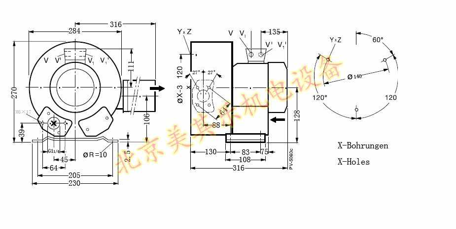 雙葉輪700w旋渦氣泵尺寸圖: